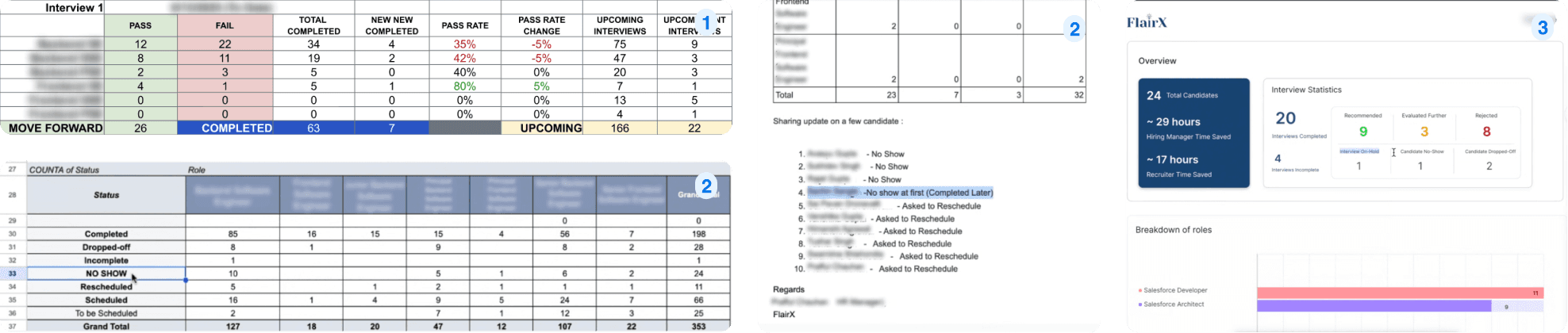 Customers had no real time view into interview progress and had to rely on FlairX admins to deliver daily reports. In turn, admins spent 2+ hours everyday compiling these reports.